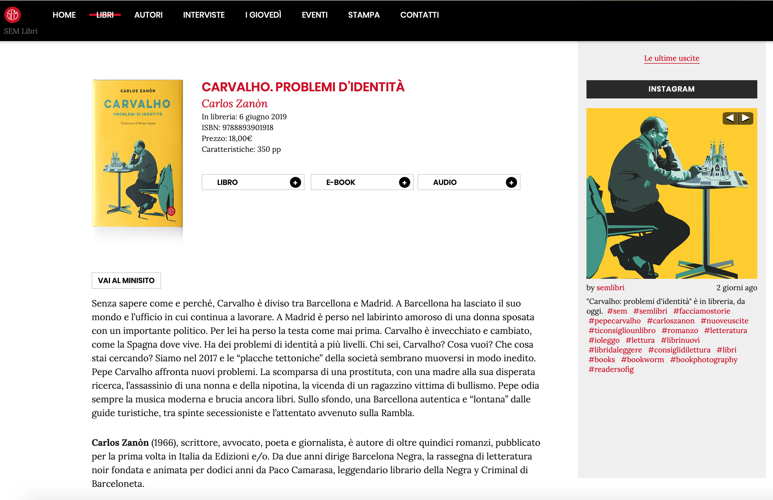 Cover for the Italian translation of Carlos Zanòn, Carvalho – Problemi di identità, SEM publishing, 2019 (AD Giacomo Callo) Back to all projects