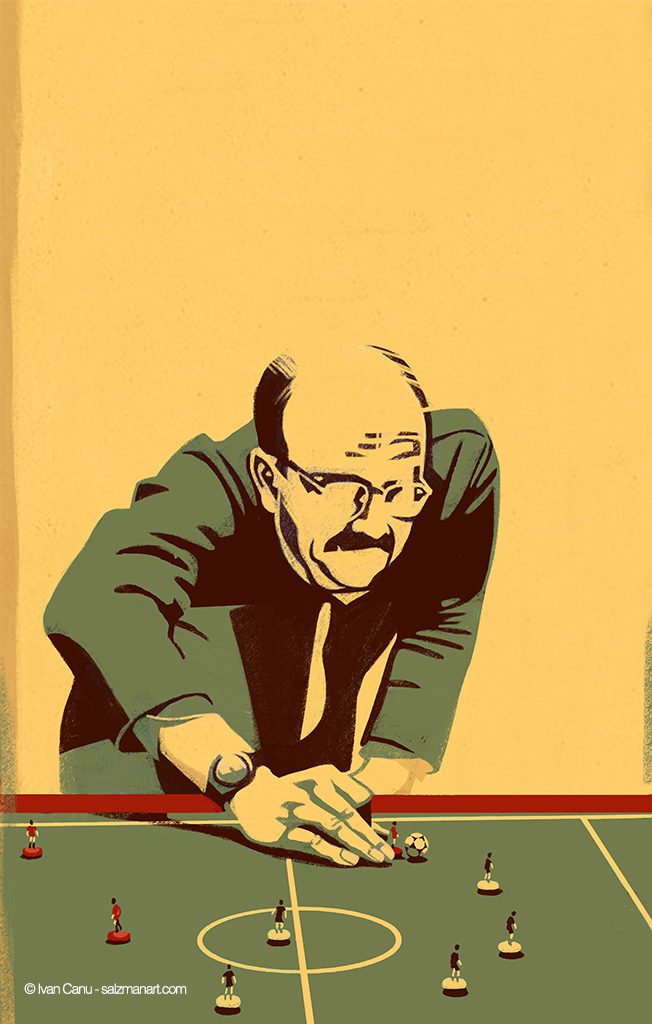Manuel Vàzquez Montalbàn, Il centravanti è stato assassinato verso sera, cover for the Italian Feltrinelli paperback edition, June 2017. AD: Cristiano Guerri