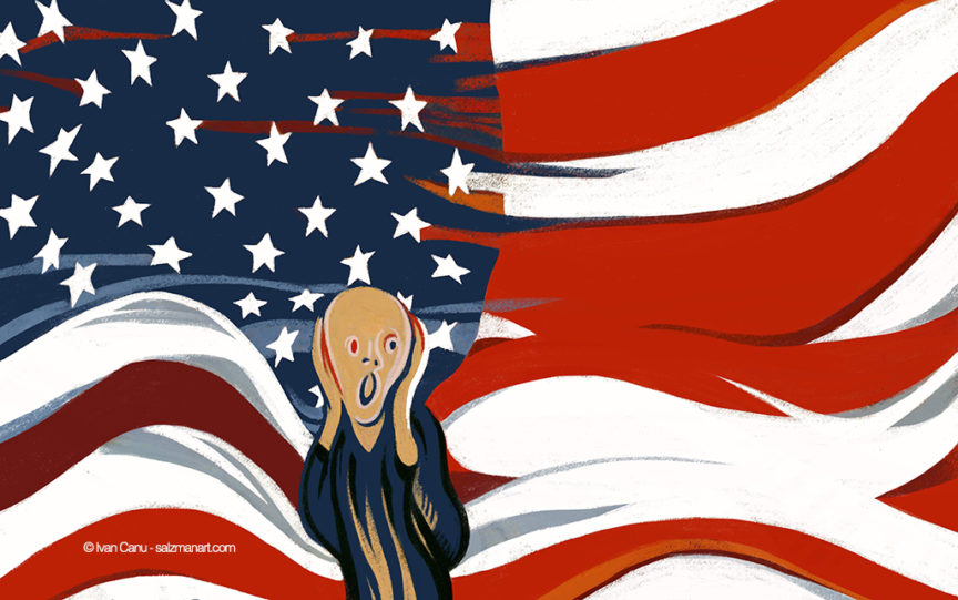 cover for Courrier international (Jan. 18-24 issue, ad: Luc Briand) about the USA in Trump’s era – illustration first made for Die Zeit, US election day 2016 (ad: Lara Huck) – digital