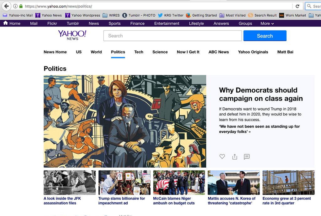 Panel for Yahoo.com about How US Democrats can win again inspired by a New New Deal. AD: Kelli Grant, David Foster and Andrew Romano.